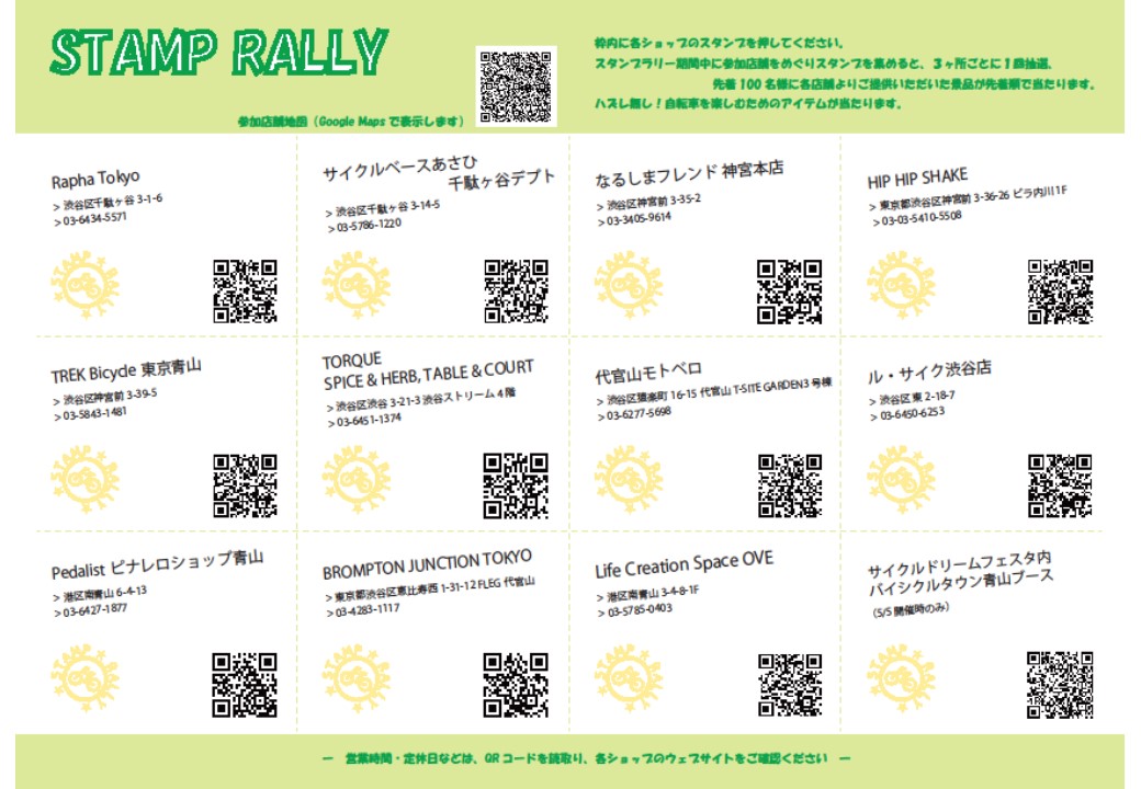 自転車を楽しみながら長く活用し、知識を深める機会づくりとして、青山周辺の自転車関連店舗11店舗によるスタンプラリーを開催致します。